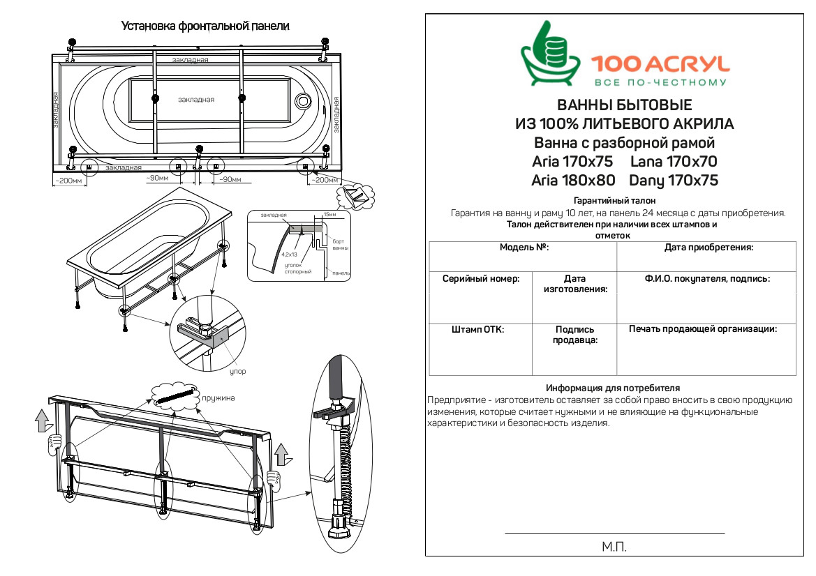 Ванна ЛАНА/LANA 1700х700 СМ/ПР 100Acryl - ванны из 100% литьевого акрила собственного производства.
