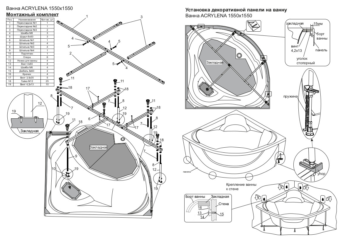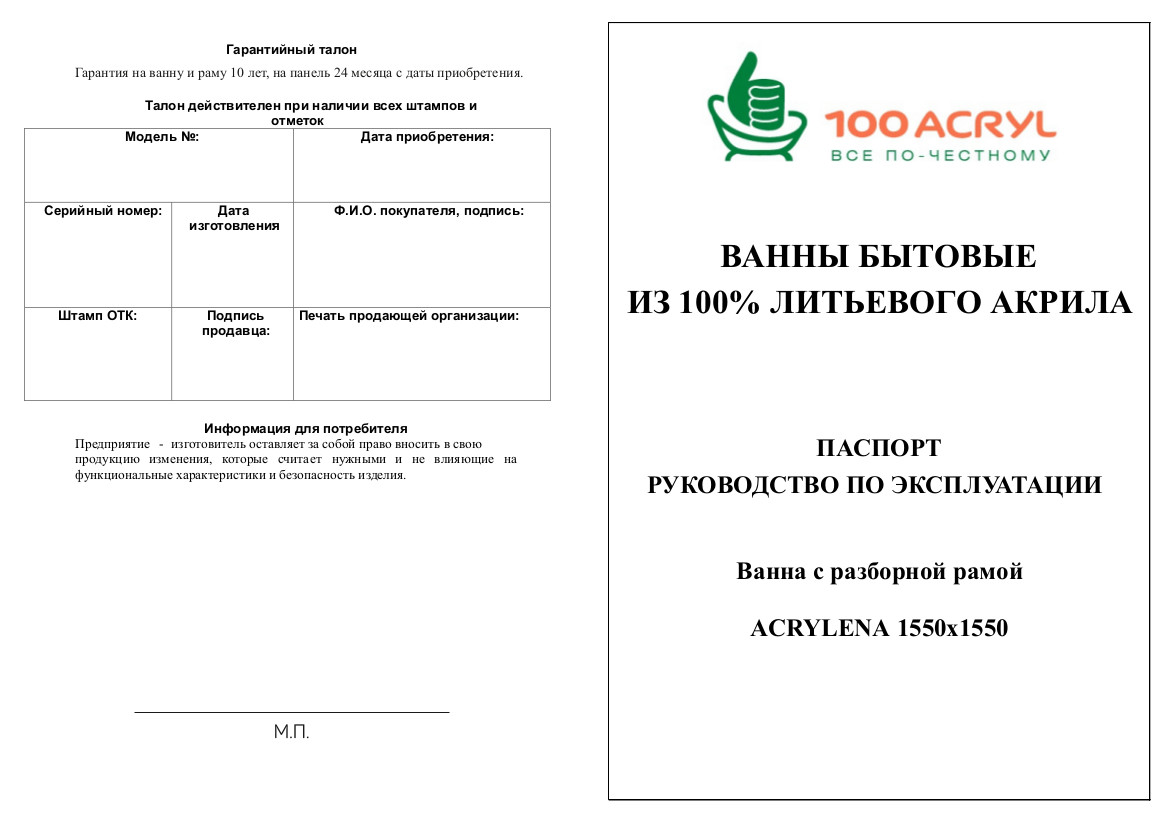 Ванна АКРИЛЕНА/ACRYLENA 1550х1550 ПР ванны 100Acryl - ванны из 100% литьевого акрила собственного производства.